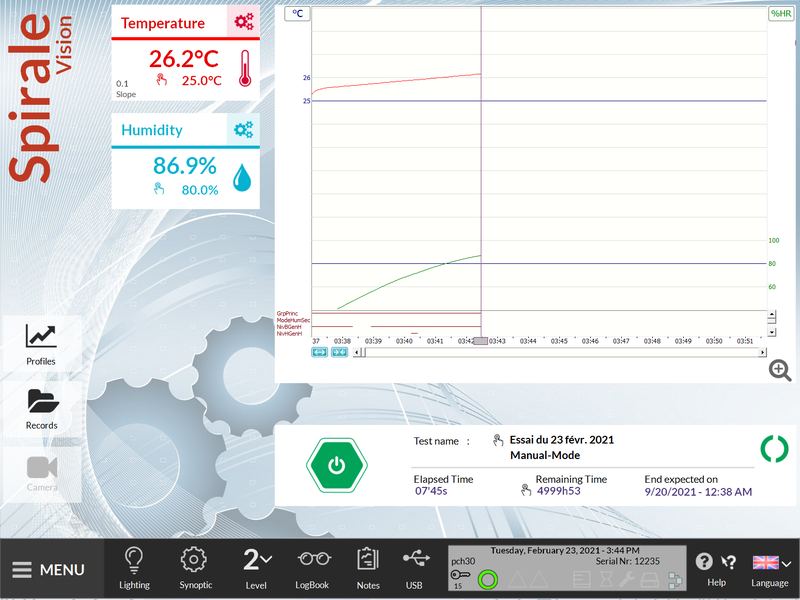 Your control panel and all of the components (test manager, program editor, etc.) benefit from remarkable ergonomics : a new user interface, instantaneous multilingual switch, ease of use, attention to detail and optimised design for use of the touch screen.